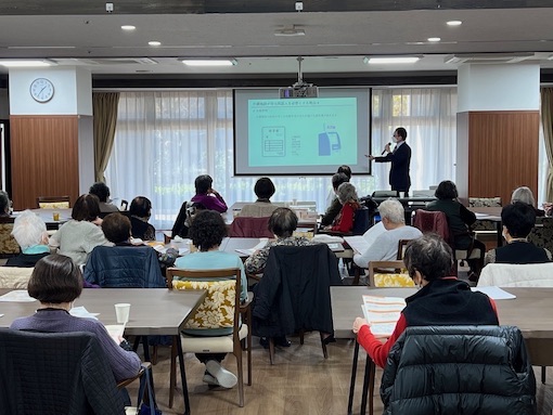 本講演は、同ホームが地域住民の方々を対象に定期的に開催されている「せせらぎカフェ(認知症カフェ)」の一環としてお声掛けいただいたものです。当日は当初の予想を上回る30名以上の方にご参加いただきました。